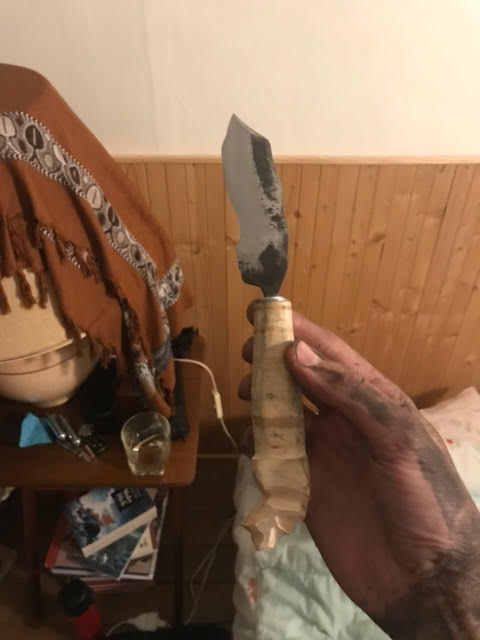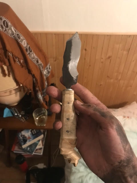 Le “Feuille de Chêne & Tête de Grenouille”, tient son nom de la forme de son pommeau et de celle de sa lame légèrement torsadée.